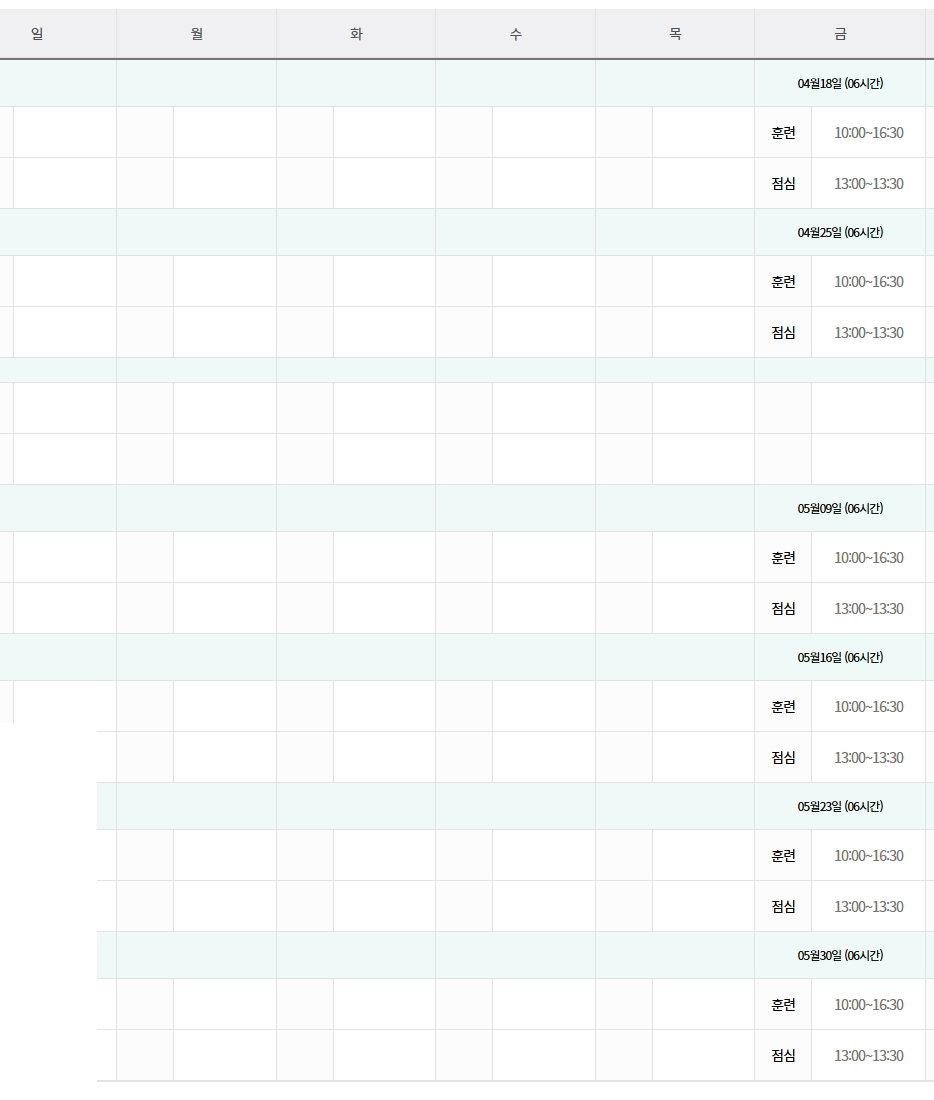 금요일 10:00 ~ 16:30 (6시간) 까지 진행합니다.
